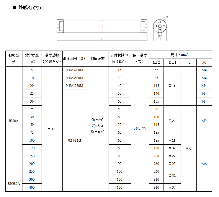 RXG24(L)鋁外殼功率型線(xiàn)繞電阻器